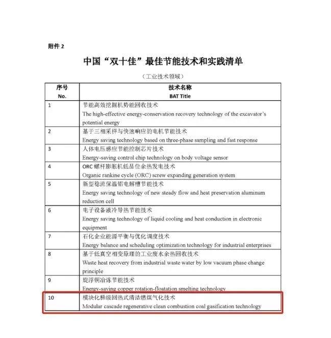 “模塊化梯級回熱式清潔燃煤氣化技術”成功入選中國“雙十佳”最佳節能技術