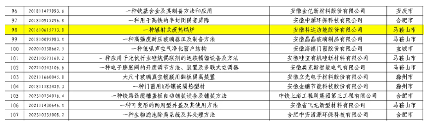 近日,第十一屆安徽省專利獎評選結果揭曉,安徽科達潔能的發明專利“一種輻射式廢熱鍋爐”(專利號:201610615713.8)榮獲專利優秀獎。